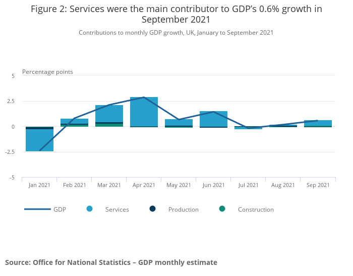 Figure 2: Services were the main contributor to GDP’s 0.6% growth in September 2021