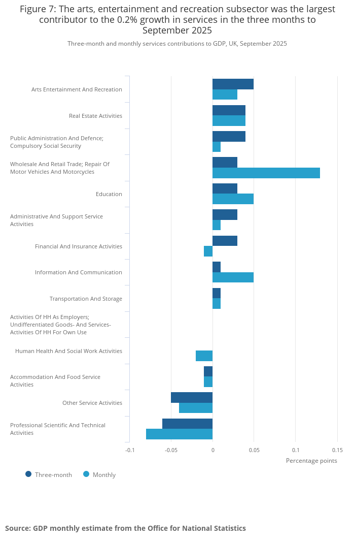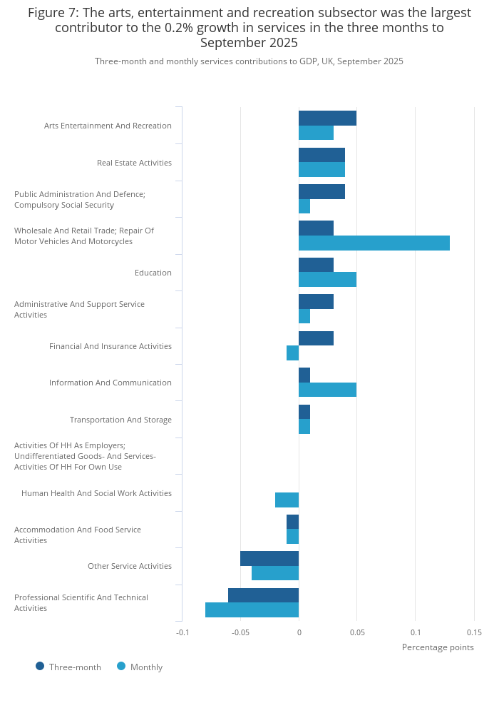 Figure 7: The arts, entertainment and recreation subsector was the largest contributor to the 0.2% growth in services in the three months to September 2025