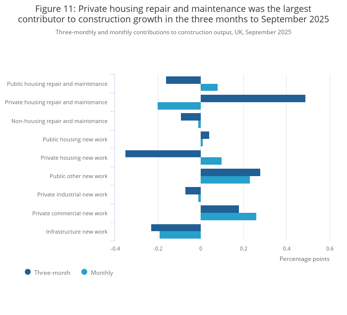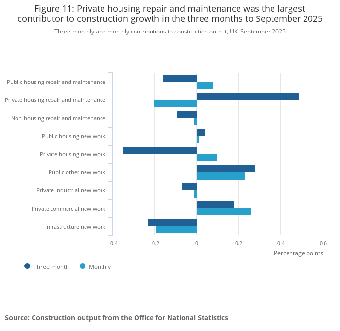 Further detail on construction output growth rates can be found in our Construction output in Great Britain: September 2025.