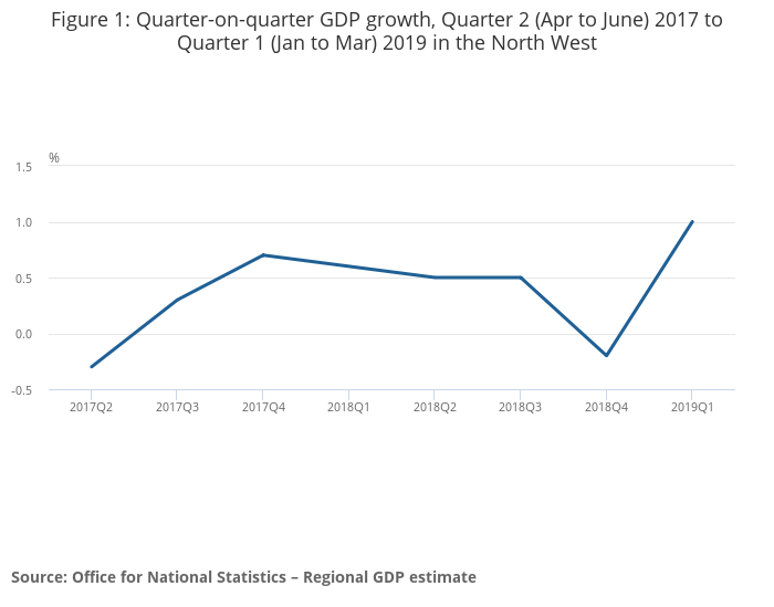 - GDP growth in the North West was 1.0% in Quarter 1 (Jan to Mar) 2019