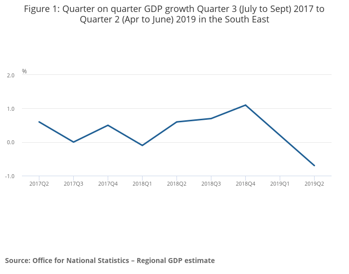 - GDP growth in the South East was negative 0.7% in Quarter 2 (Apr to June) 2019