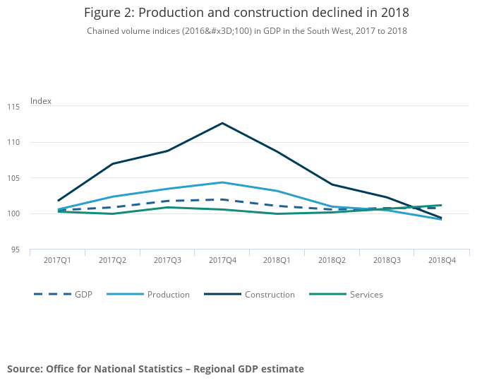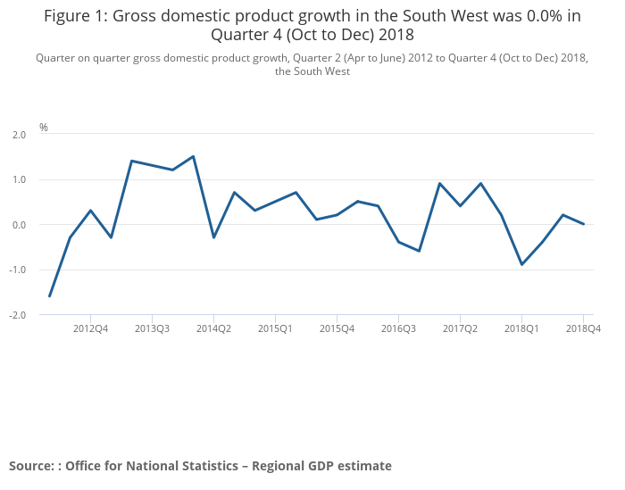 Gross domestic product growth in the South West was 0.0% in Quarter 4 (Oct to Dec) 2018.