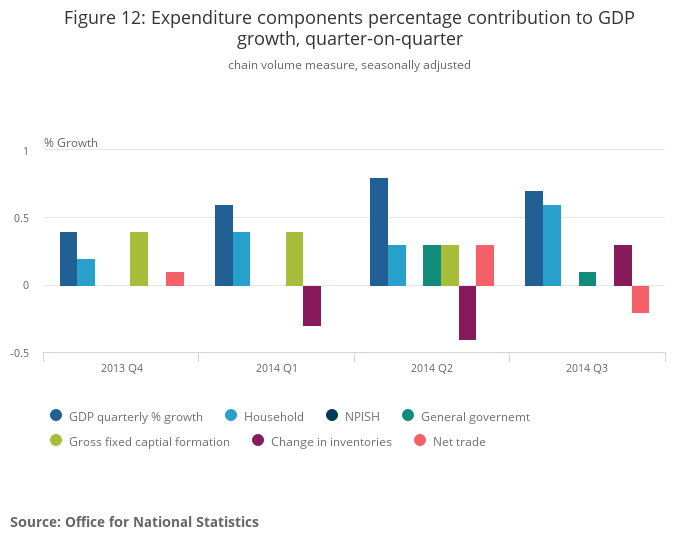 Gross domestic expenditure (the sum of all expenditure by UK residents on goods and services which is not used up or transformed in a productive process) rose by 1.0% in Q3 2014, following a 0.5% increase in Q2 2014.