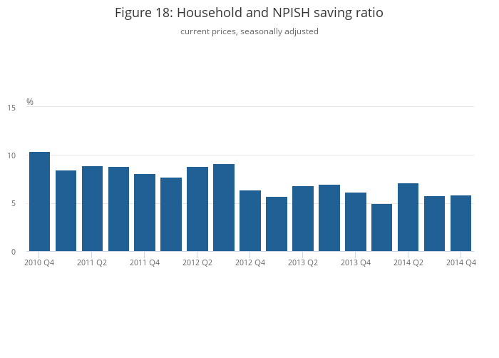 The households’ and non-profit institutions serving households saving ratio was estimated to be 6.0% in 2014 compared with 6.4% in 2013