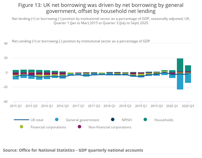 Figure 13: UK net borrowing was driven by net borrowing by general government, offset by household net lending