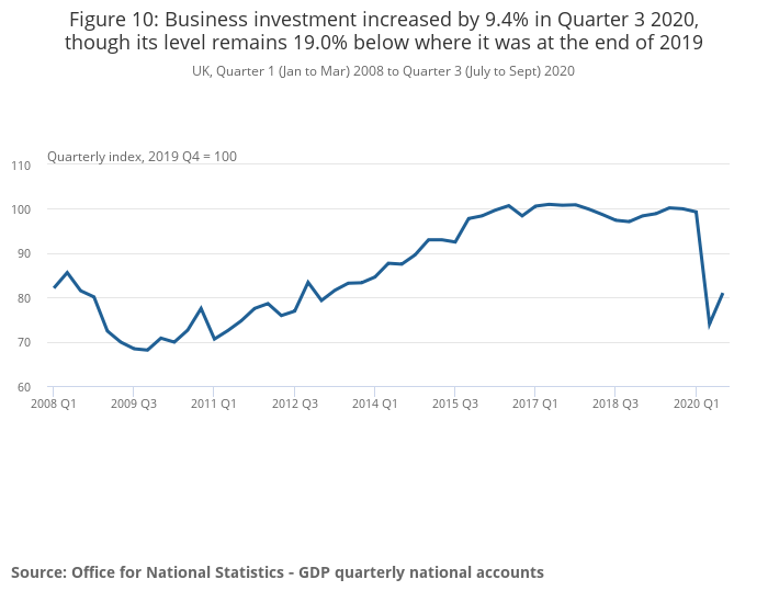 There has been a recovery in private consumption, government consumption and, to a lesser extent, business investment in Quarter 3 2020 in line with the easing of public health restrictions, however, the levels remain below their pre-lockdown level.