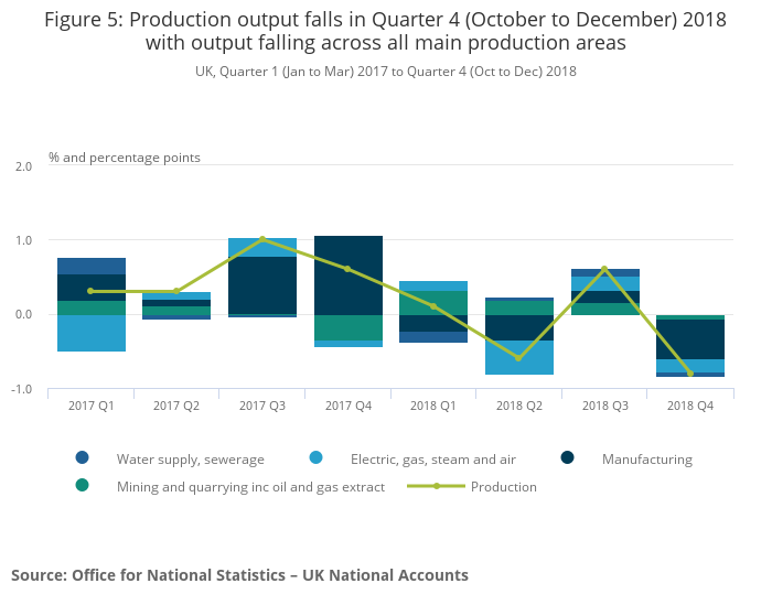 Figure 5: Production output falls in Quarter 4 (October to December) 2018 with output falling across all main production areas