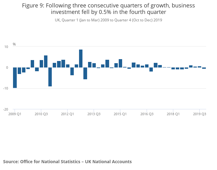 Figure 9: Following three consecutive quarters of growth, business investment fell by 0.5% in the fourth quarter