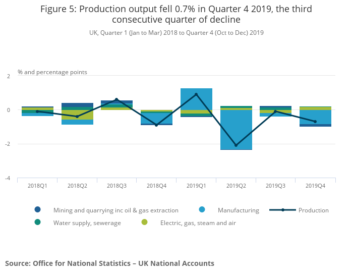 Figure 5: Production output fell 0.7% in Quarter 4 2019, the third consecutive quarter of decline