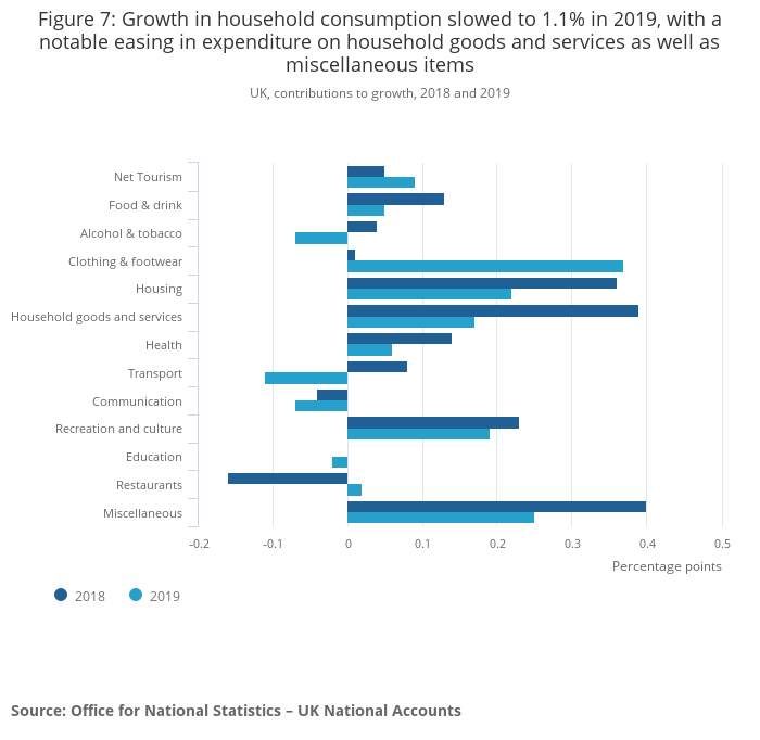 Figure 7: Growth in household consumption slowed to 1.1% in 2019, with a notable easing in expenditure on household goods and services as well as miscellaneous items