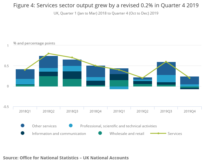 Download this chart Figure 4: Services sector output grew by a revised 0.2% in Quarter 4 2019