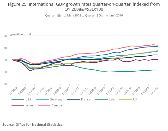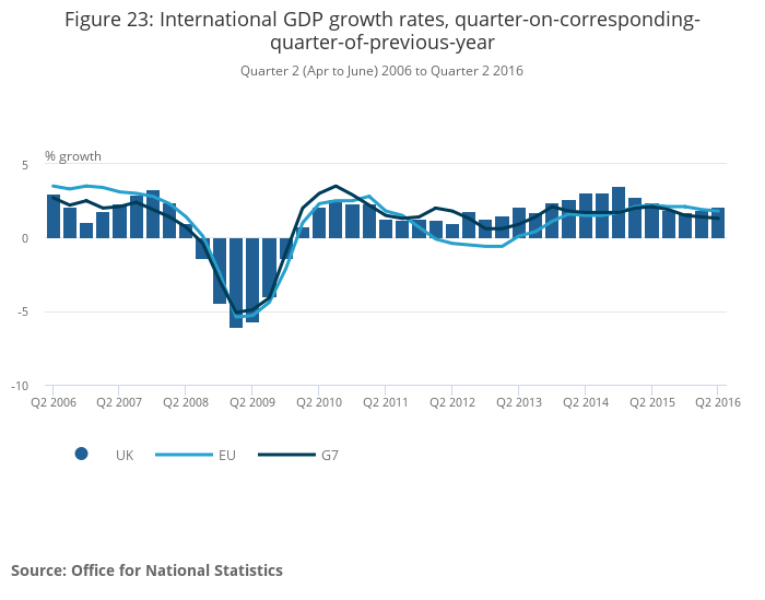 Nôl i'r tabl cynnwys17. International comparisons for Quarter 2 (Apr to June) 2016