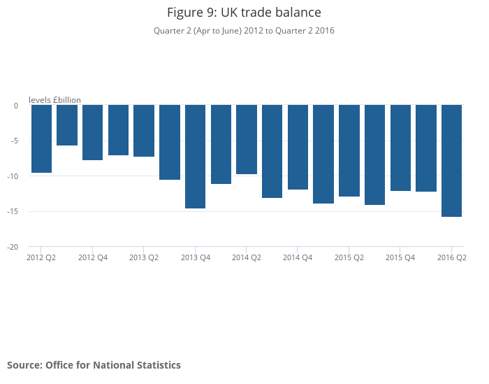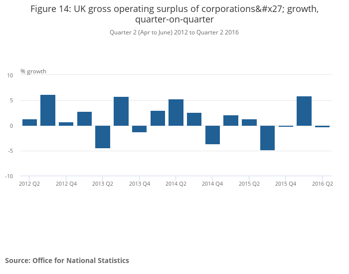 Net lending of private non-financial corporations was £4.7 billion in Quarter 2 2016, following net lending of £5.7 billion in the previous quarter. This decrease to net lending in the latest quarter was due to a rise in gross capital formation with other smaller changes, partially offset by a rise in net property income.