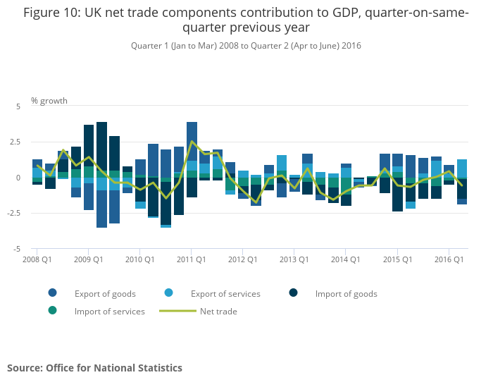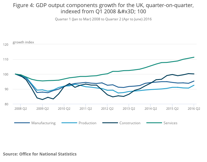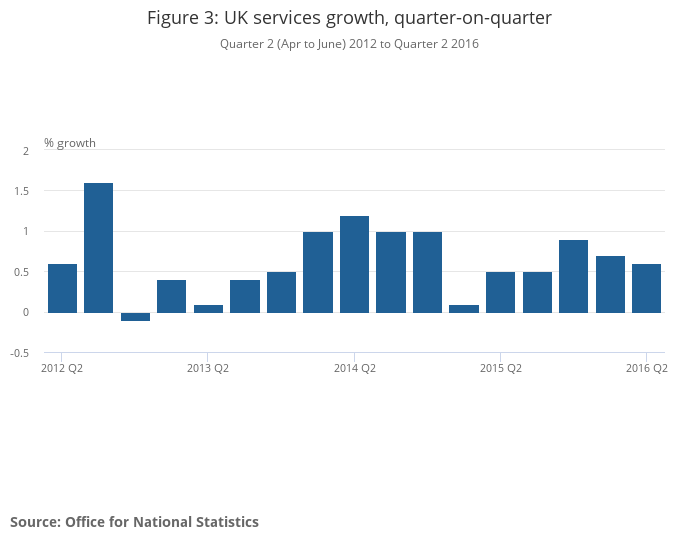 The reporting period for this release covers Quarter 2 (Apr to June) 2016, and therefore includes data in the lead up to and for a short period after the EU referendum. There is very little anecdotal evidence at present to suggest that the referendum has had an impact on gross domestic product (GDP) in Quarter 2 2016. The Index of Services, published alongside this release, covers a full month of data following the EU referendum.