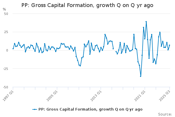 Download this time seriesPP: Gross Capital Formation, growth Q on Q yr ago