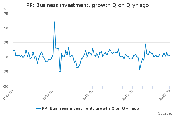 Download this time seriesPP: Business investment, growth Q on Q yr ago