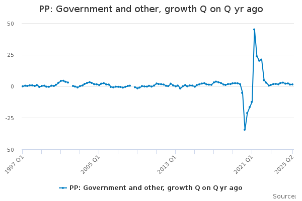 Download this time seriesPP: Government and other, growth Q on Q yr ago