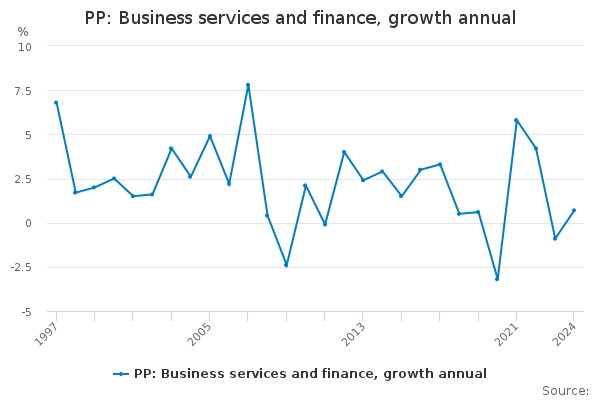 Download this time seriesPP: Business services and finance, growth annual