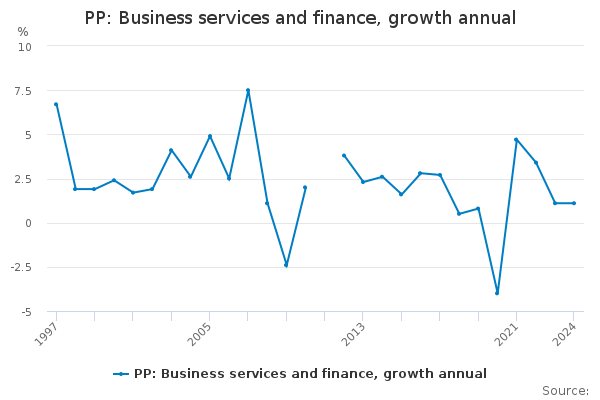 Download this time seriesPP: Business services and finance, growth annual