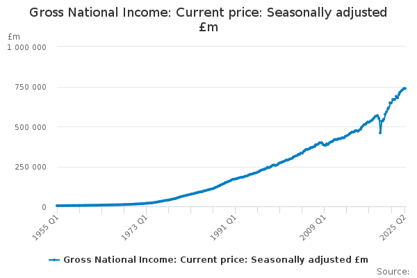 Download this time seriesGross National Income: Current price: Seasonally adjusted £m