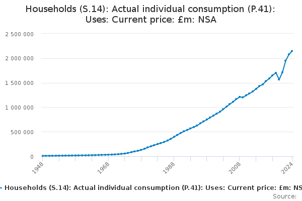 Download this time seriesHouseholds (S.14): Actual individual consumption (P.41): Uses: Current price: £m: NSA