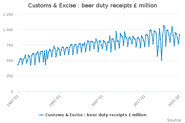 Download this time seriesCustoms & Excise : beer duty receipts £ million