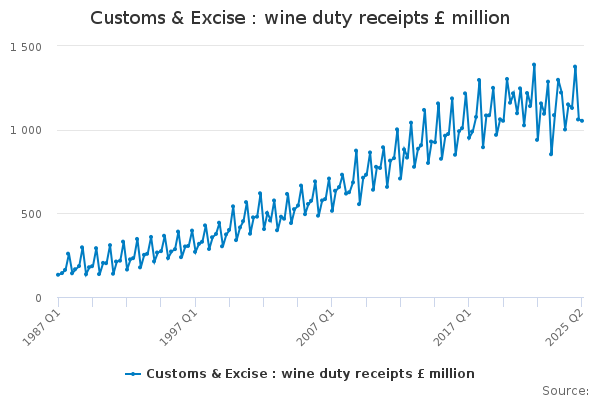 Download this time seriesCustoms & Excise : wine duty receipts £ million