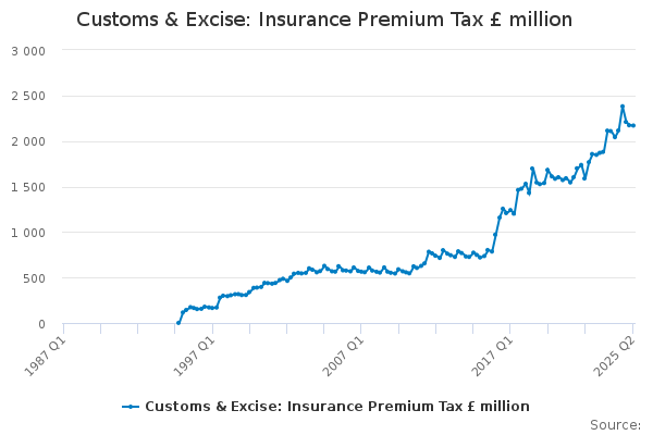 Download this time seriesCustoms & Excise: Insurance Premium Tax £ million