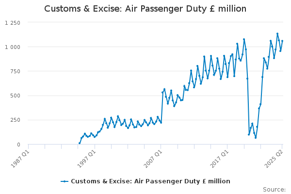 Download this time seriesCustoms & Excise: Air Passenger Duty £ million