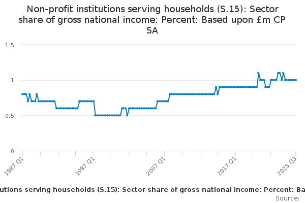 Download this time seriesNon-profit institutions serving households (S.15): Sector share of gross national income: Percent: Based upon £m CP SA