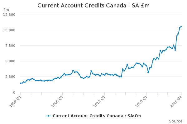 Download this time seriesCurrent Account Credits Canada : SA:£m
