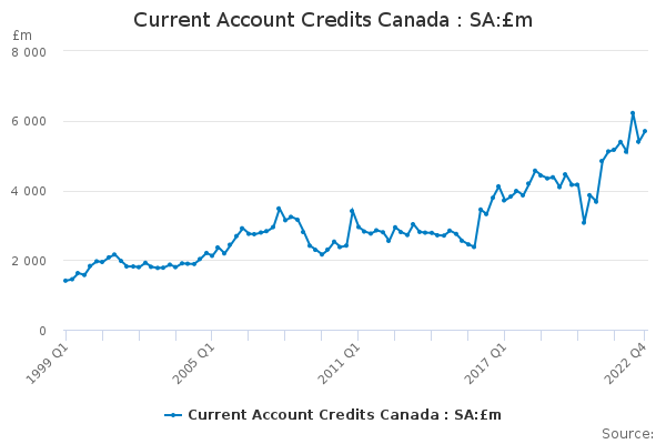 Download this time seriesCurrent Account Credits Canada : SA:£m