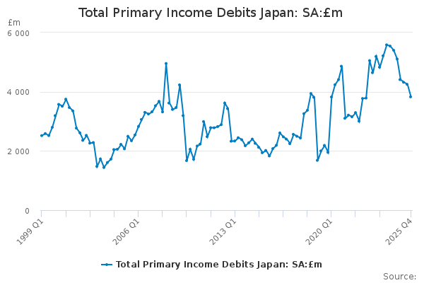 Download this time seriesTotal Primary Income Debits Japan: SA:£m