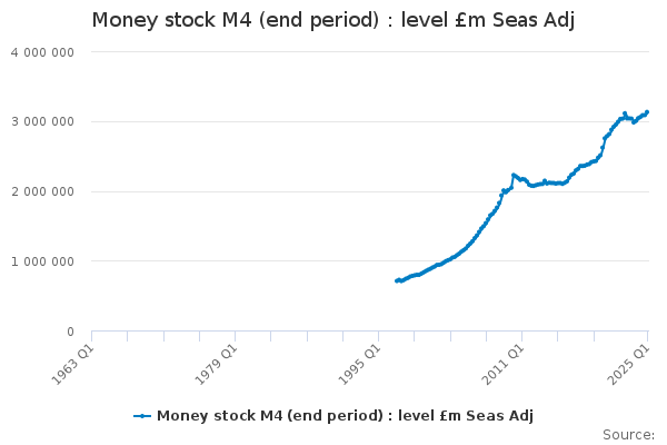 Download this time seriesMoney stock M4 (end period) : level £m Seas Adj