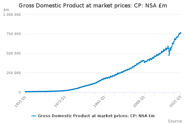 Download this time seriesGross Domestic Product at market prices: CP: NSA £m