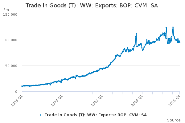 Download this time seriesTrade in Goods (T): WW: Exports: BOP: CVM: SA
