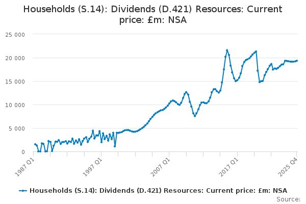 Download this time seriesHouseholds (S.14): Dividends (D.421) Resources: Current price: £m: NSA