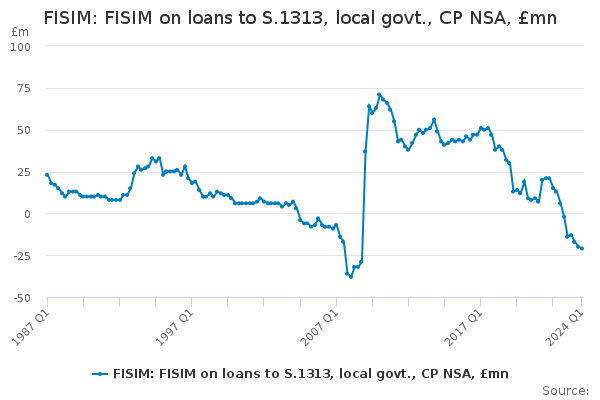Download this time seriesFISIM: FISIM on loans to S.1313, local govt., CP NSA, £mn