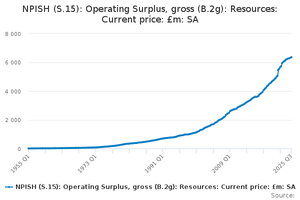 Download this time seriesNPISH (S.15): Operating Surplus, gross (B.2g): Resources: Current price: £m: SA