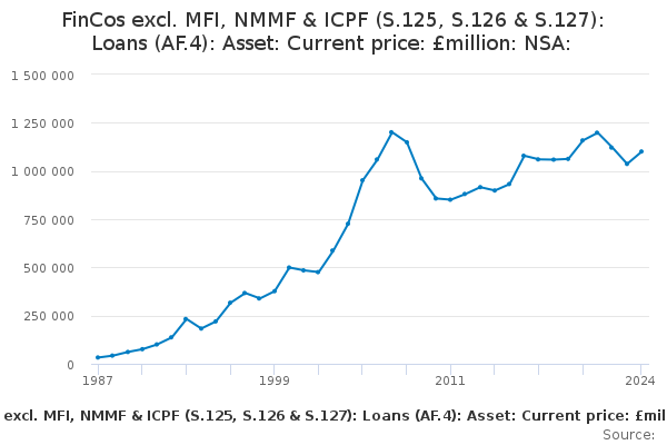 Download this time seriesFinCos excl. MFI, NMMF & ICPF (S.125, S.126 & S.127): Loans (AF.4): Asset: Current price: £million: NSA: