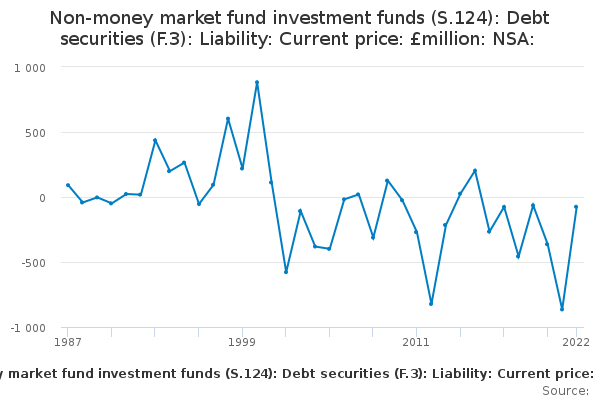 Download this time seriesNon-money market fund investment funds (S.124): Debt securities (F.3): Liability: Current price: £million: NSA: