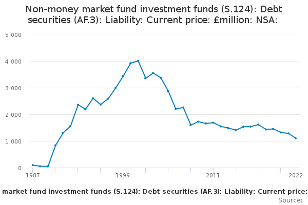 Download this time seriesNon-money market fund investment funds (S.124): Debt securities (AF.3): Liability: Current price: £million: NSA: