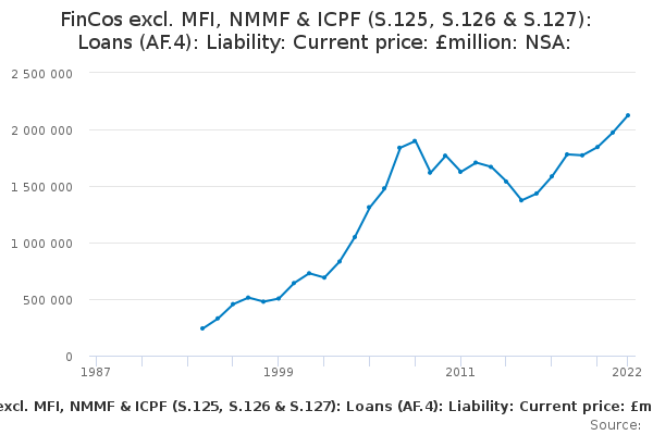Download this time seriesFinCos excl. MFI, NMMF & ICPF (S.125, S.126 & S.127): Loans (AF.4): Liability: Current price: £million: NSA: