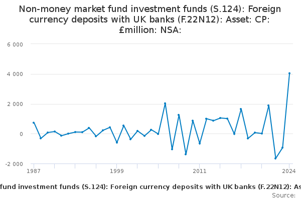 Download this time seriesNon-money market fund investment funds (S.124): Foreign currency deposits with UK banks (F.22N12): Asset: CP: £million: NSA: