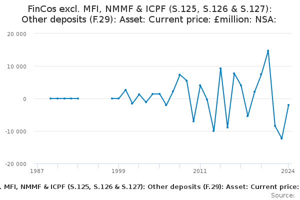 Download this time seriesFinCos excl. MFI, NMMF & ICPF (S.125, S.126 & S.127): Other deposits (F.29): Asset: Current price: £million: NSA:
