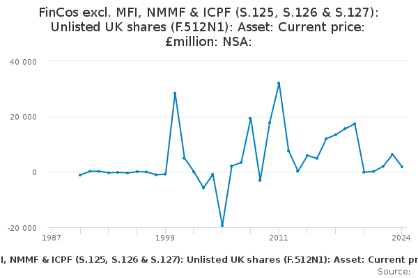 Download this time seriesFinCos excl. MFI, NMMF & ICPF (S.125, S.126 & S.127): Unlisted UK shares (F.512N1): Asset: Current price: £million: NSA: