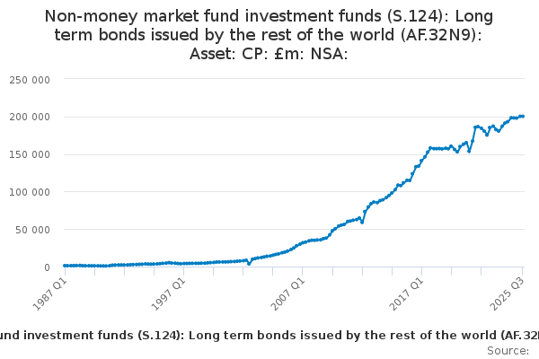 Download this time seriesNon-money market fund investment funds (S.124): Long term bonds issued by the rest of the world (AF.32N9): Asset: CP: £m: NSA:
