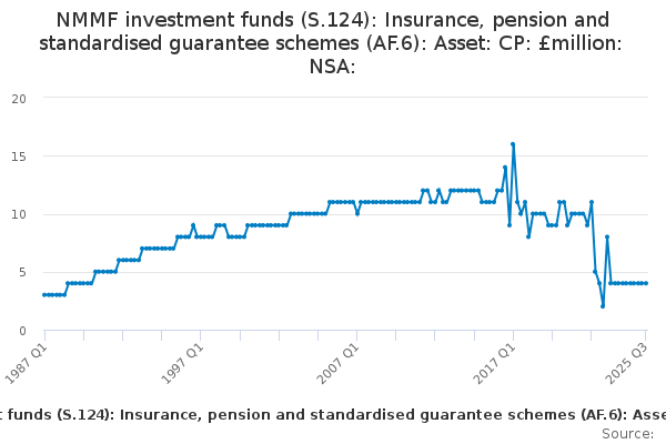 Download this time seriesNMMF investment funds (S.124): Insurance, pension and standardised guarantee schemes (AF.6): Asset: CP: £million: NSA: