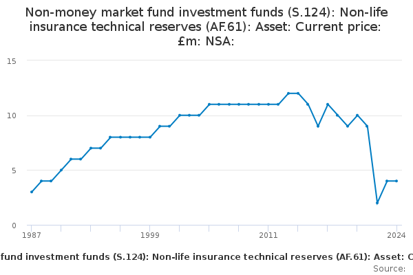 Download this time seriesNon-money market fund investment funds (S.124): Non-life insurance technical reserves (AF.61): Asset: Current price: £m: NSA: