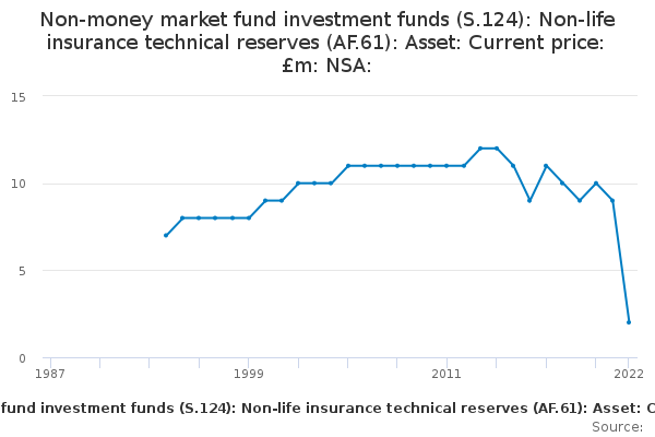 Download this time seriesNon-money market fund investment funds (S.124): Non-life insurance technical reserves (AF.61): Asset: Current price: £m: NSA: